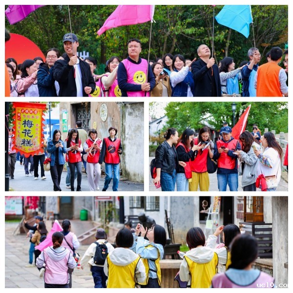 下午1时30分至3时20分,打卡寻宝活动在沈荡古镇正式开展。这座因“多水荡”得名的千年古镇,在秋日暖阳下更显韵味:河道泛着粼粼微光,老屋白墙与门前彩旗相映成趣,百年酱园的醇厚香气萦绕街巷。余华笔下的胜利饭店静静矗立街角,由旧式粮站改造的沈荡谷仓文创园藏着历史与现代碰撞的惊喜,构想几何谷仓书店的玻璃幕墙反射着秋日天光,文创店里的特色糕点、贝壳雕、冰箱贴等工艺品琳琅满目。12支队伍循着“打卡秘籍”穿梭于古桥流水间,在文化点位完成知识解谜,在协作闯关中凝聚团队默契,拍照留念的欢笑与探讨答案的专注交织,欢声笑语洒满古镇街巷。